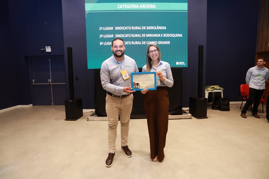O Sindicato Rural de Sidrolândia recebeu o 1º lugar na classificação de municípios e sindicatos que promovem boas práticas e excelência na realização de cursos rápidos via Senar no Mato Grosso do Sul. A premiação veio durante a Convenção Senar 2025, realizada na semana passada, em Campo Grande, reunindo representantes de mais de 60 sindicatos do estado, lideranças e mobilizadores.